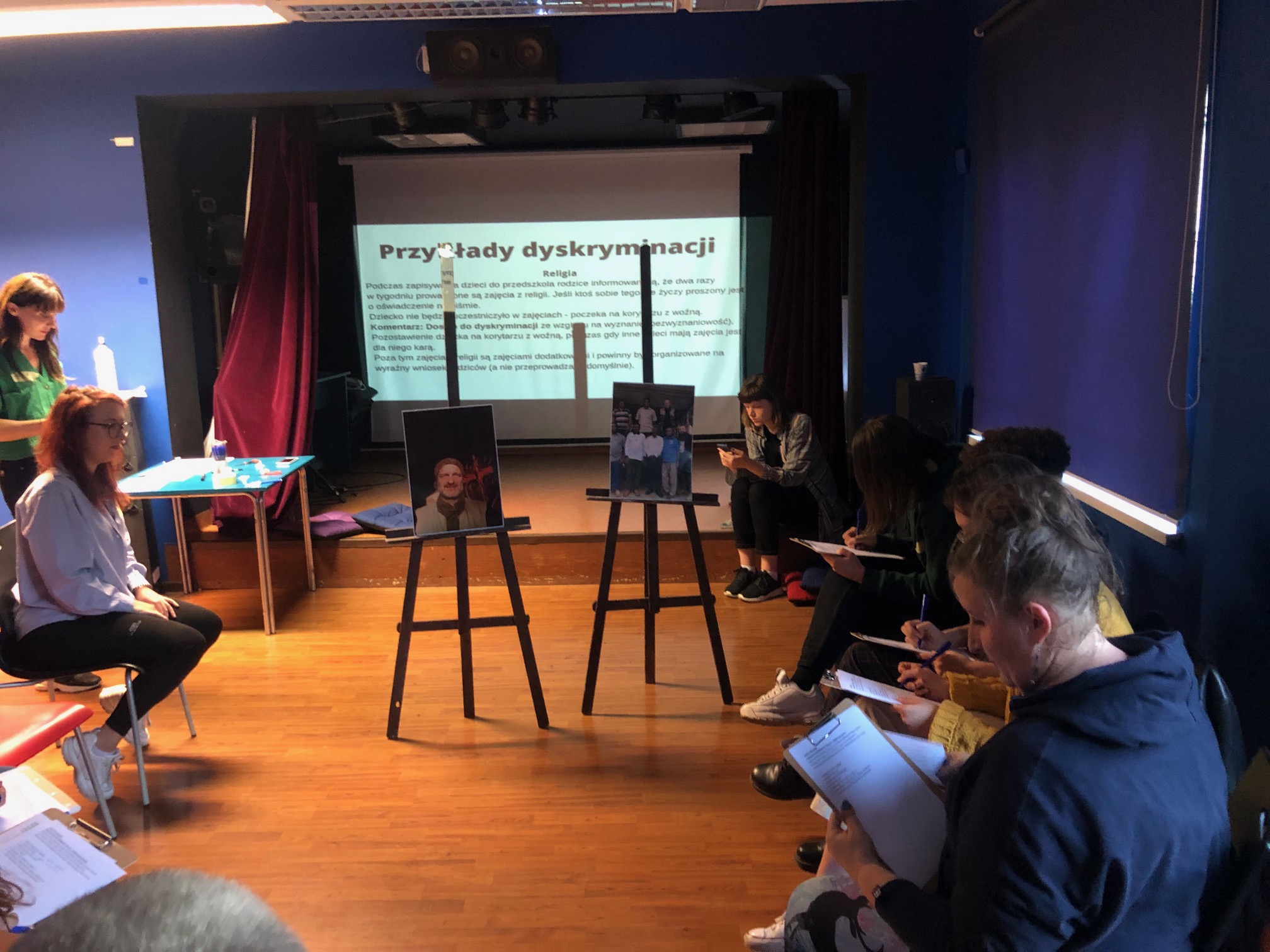Niesamowite efekty poznawcze daje wcielanie się w rolę osób dyskryminowanych. Nasi uczestnicy losowali z tzw. Torby przeznaczenia kartkę, na której wpisana była osoba dyskryminowana ze względu na jakąś cechę np. rasę czy niepełnosprawność. Następnie w grupach przygotowywali i odgrywali scenki, a pozostali uczestnicy mieli zgadnąć, na jakim tle następuje dyskryminacja.